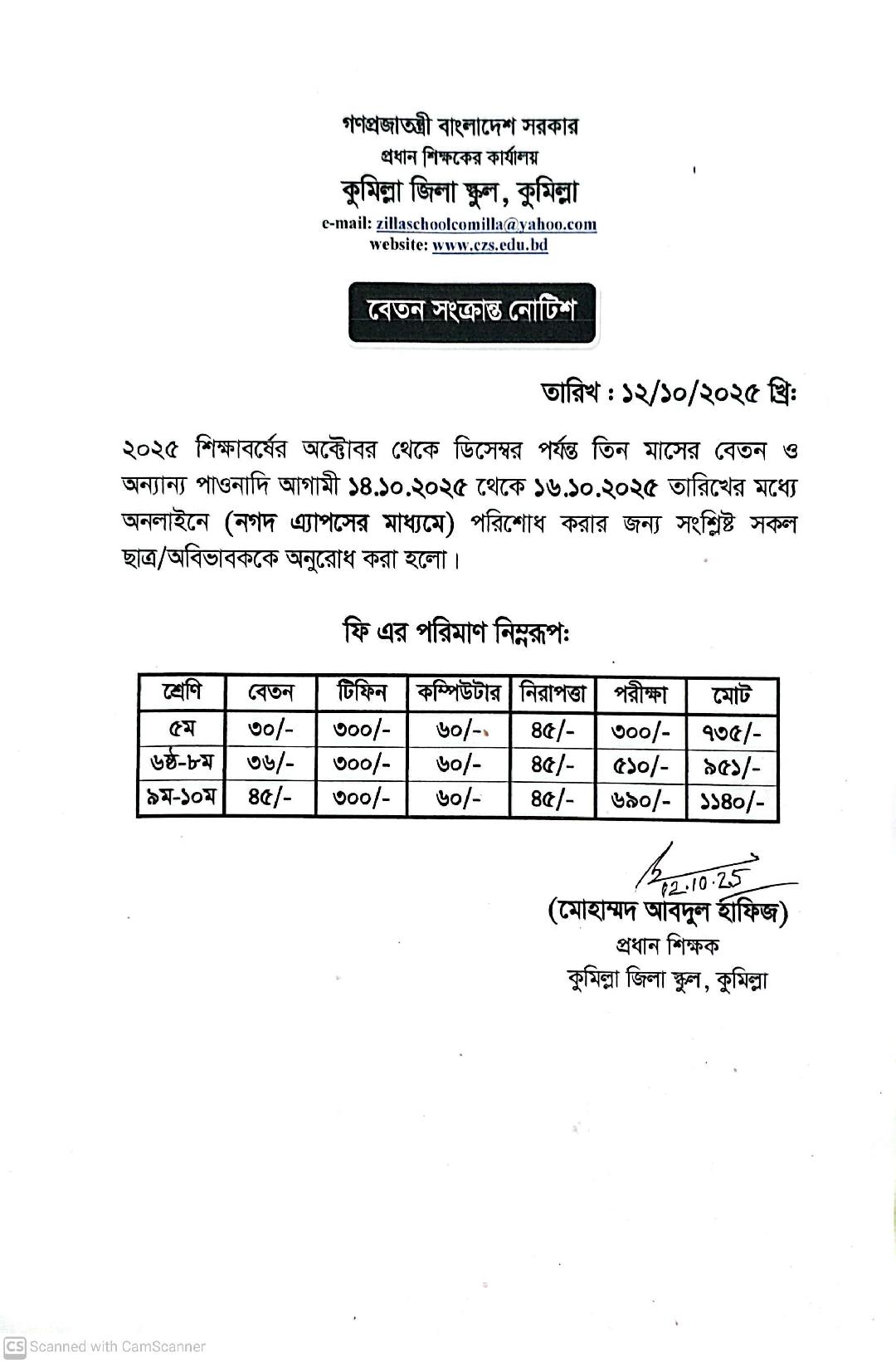 অক্টোবর থেকে ডিসেম্বর পর্যন্ত বেতনের নোটিশ