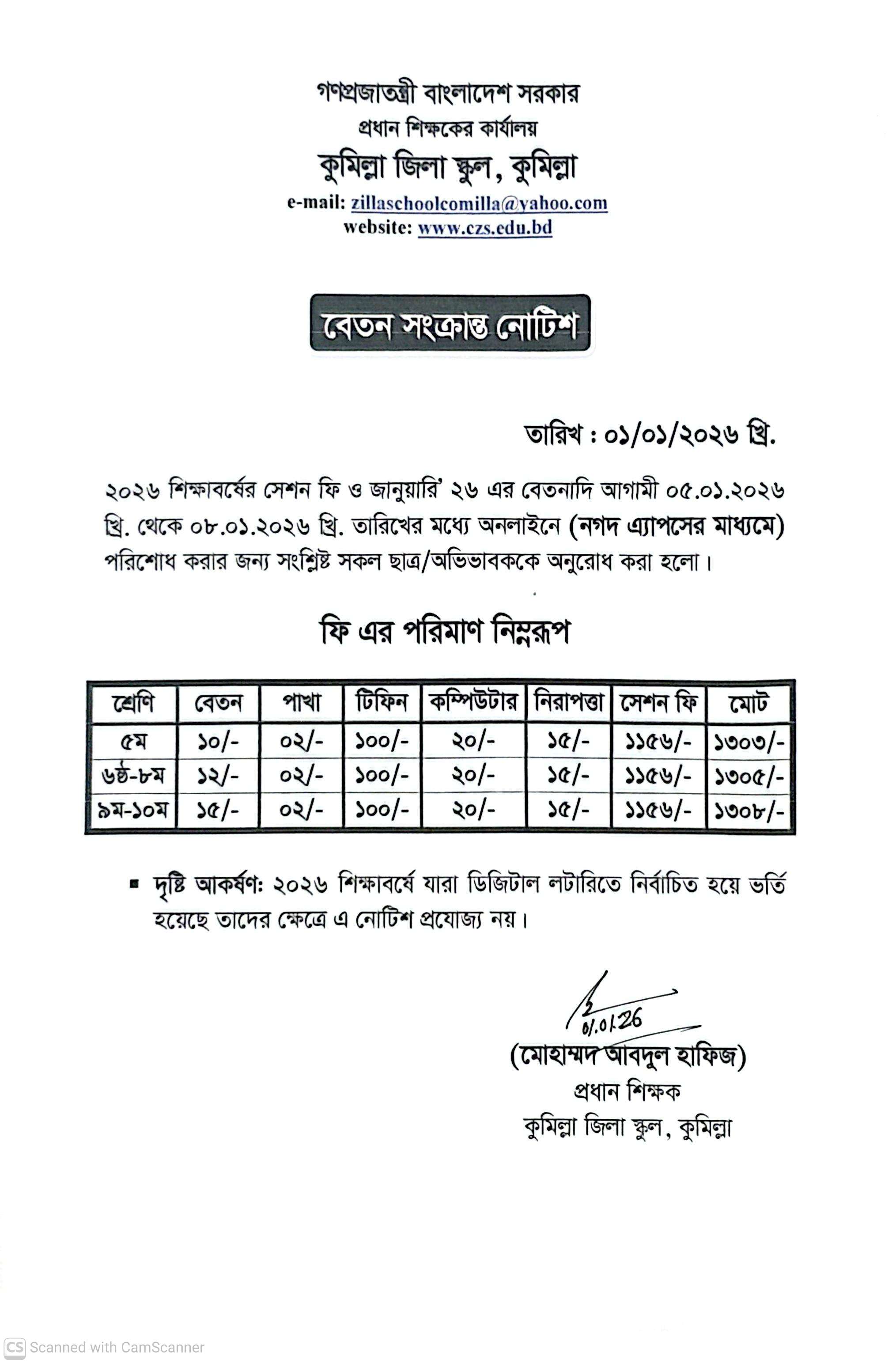 বেতন সংক্রান্ত নোটিশ জানুয়ারি ২০২৬